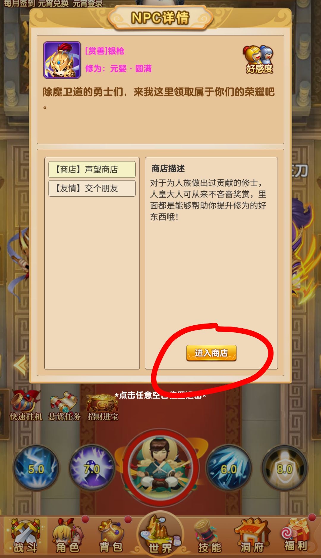 五庄观,可以弄套寻龙去扫荡。东海是非常重要的灵石来源,建议时间到了就去打,前期还是比较重要,而且有声望材料。地图每个npc都有声望任务,先弄演武场火灵儿,她可以加魅力,增加所有声望任务友好度,