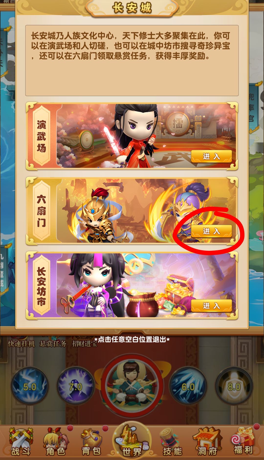 然后可以看到游戏有自带的攻略,让大家熟悉一些基本内容,我觉得可以一边挂幻境,一边认真看看。装备可以先弄一套轩辕(装备一共五套,前期打boss用轩辕,打资源用寻龙,后期攒一套大奕),打幻境就用它。前面升级很快,加点全点攻击。前面3-4天,咱们主要的任务就是挂幻境,比较轻松,可以下个自动精灵或者连点器,做个脚本挂着就成。期间会有剧情,开长安,五庄观和东海地图,长安进第二个找左边那个大兵买个赏善罚恶令,点人物头像,选中悬赏任务,这个方便交任务。