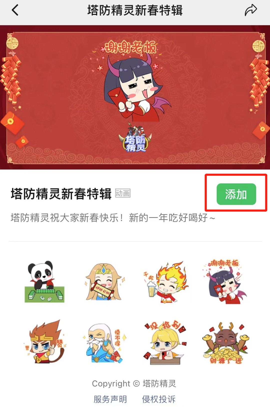 塔防精灵新春表情包正式上架微信表情开放平台啦!