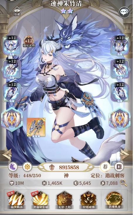 还有一个和修罗小舞类似的技能,类似王者荣耀的名刀,受到致命伤害,保留一滴血,且立刻释放一次二技能。很多经常的视频经常是一丝血然后开始斩杀n人。然后进入隐匿状态。不会被技能选中,持续2回合,该效果无法被驱散(若友方仅剩自身,则取消隐匿)。该技能bug一般的存在,在这两个回合之内,敌方不管单体,还是群攻技能,都无法攻击速神朱竹青,持续2回合,如果带吸血,基本上又是一条好汉。