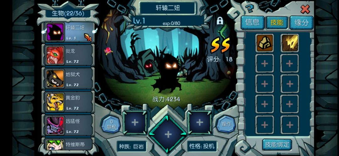 我是土属性的,果然我长得黑黑小小,像个爬虫,真丑,还好有皮肤可以穿戴。(这时我还只有5技能)