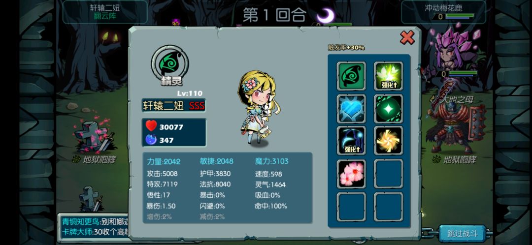 于是我又转了一次,这一次转到了精灵族,触发主,加15%触发率。