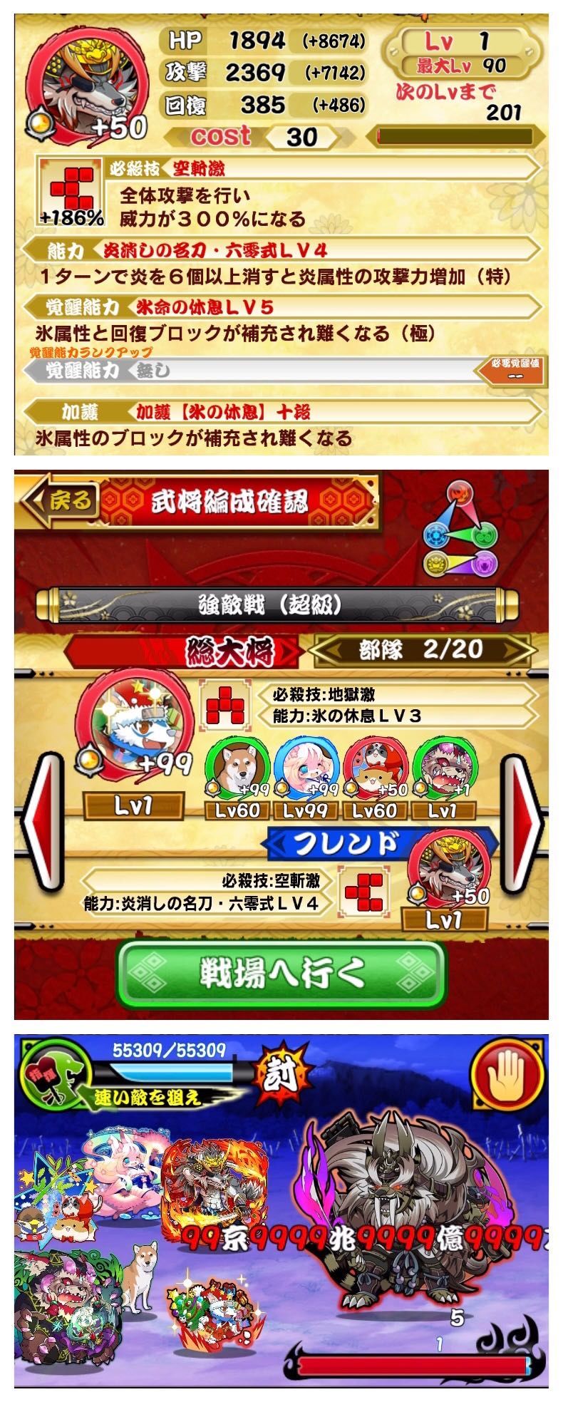 你想依靠自己打「兆の獸」觉醒值最好达到7+30以上。「京の獸」7+99求稳。[一消十の名人]加伤可是很高。