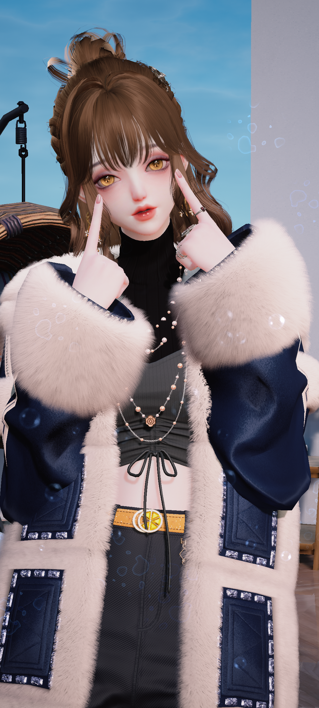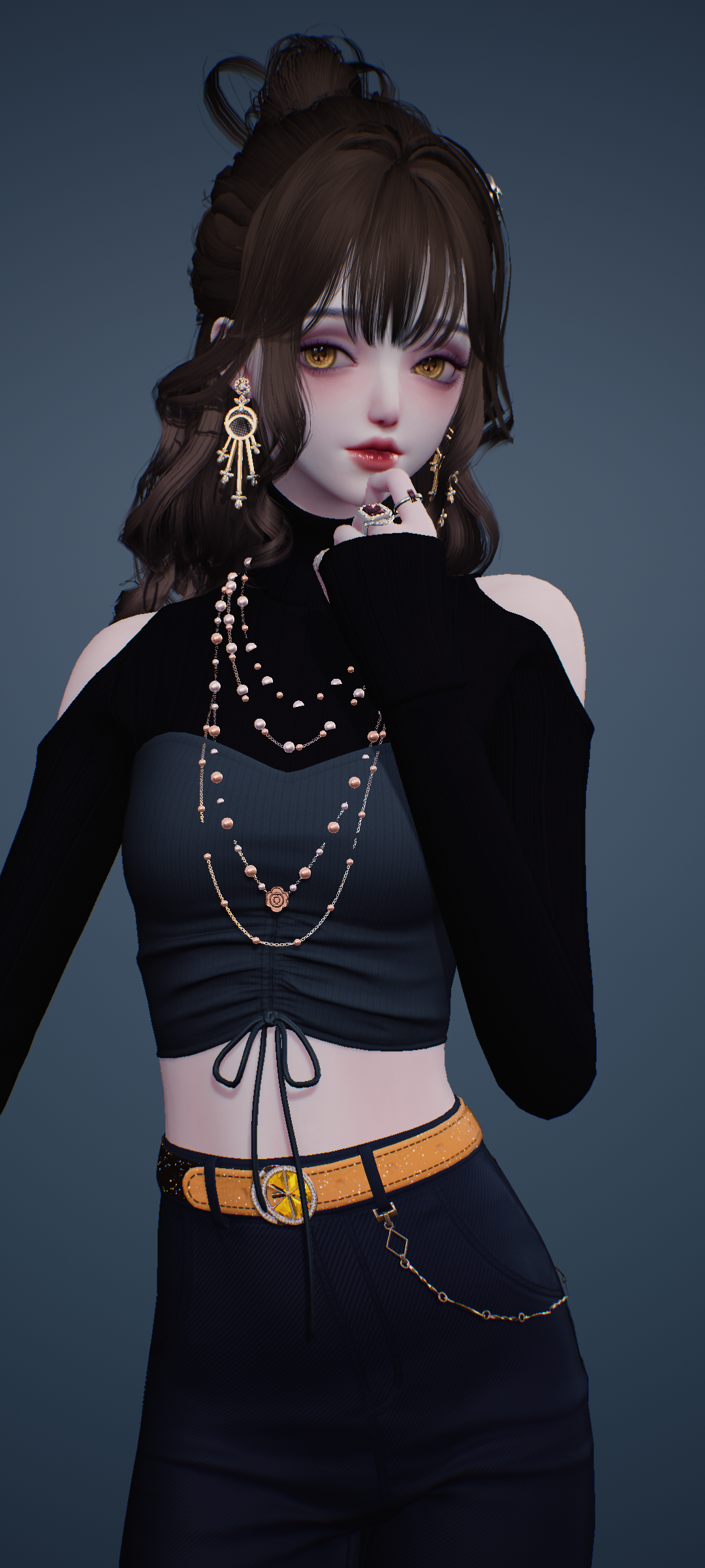 头发代言商店,项链签到奖励,上衣新手装染黑,裤子设计图纸(不是主线)外套和包包就都是活动啦