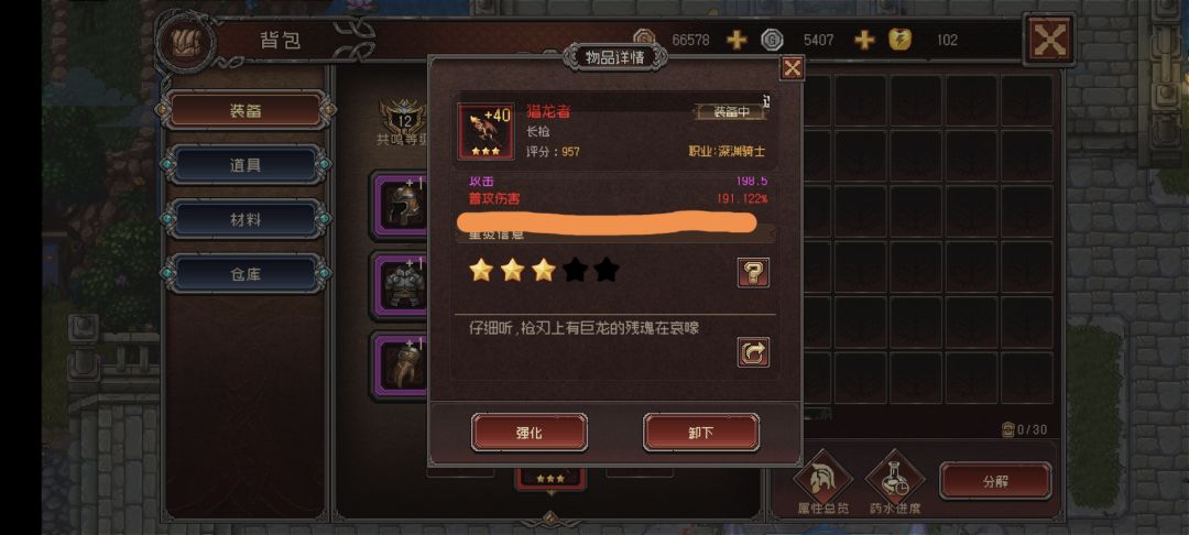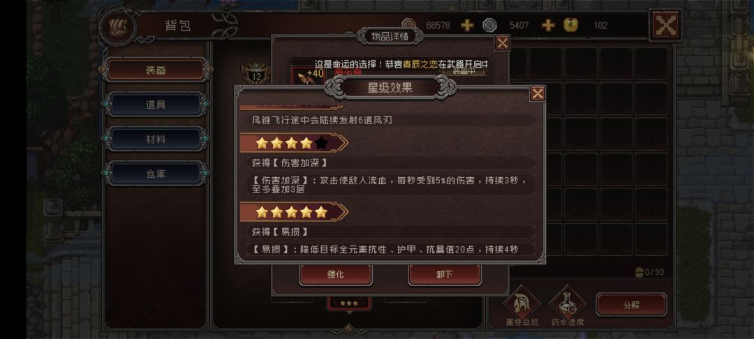接着想玩啥角色等抽到两个箱子的红武确保有碎片去刷他的属性,因为一个红属性真的很奈斯而且武器战力来源快最不缺的就是武器,红武的选择可以看我放的上面俩图你可以看它升星以后效果是啥,和自己所选的技能效果是否搭配一点。