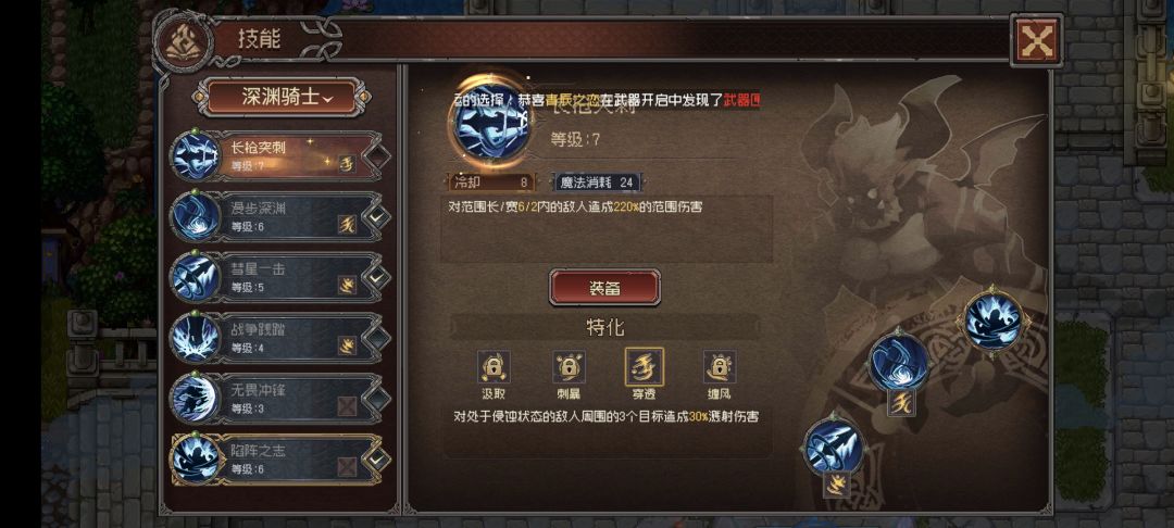 技能嘛下面有特化效果,四个里面选自己喜欢的解锁激活不要都解锁太浪费钱了,特化效果和武器搭配才是最好的