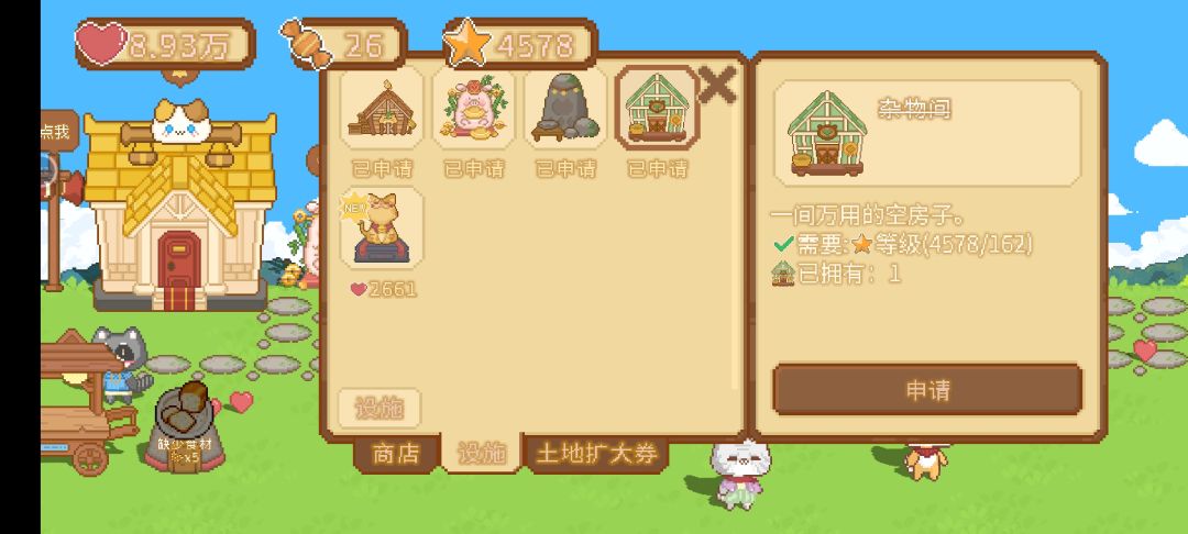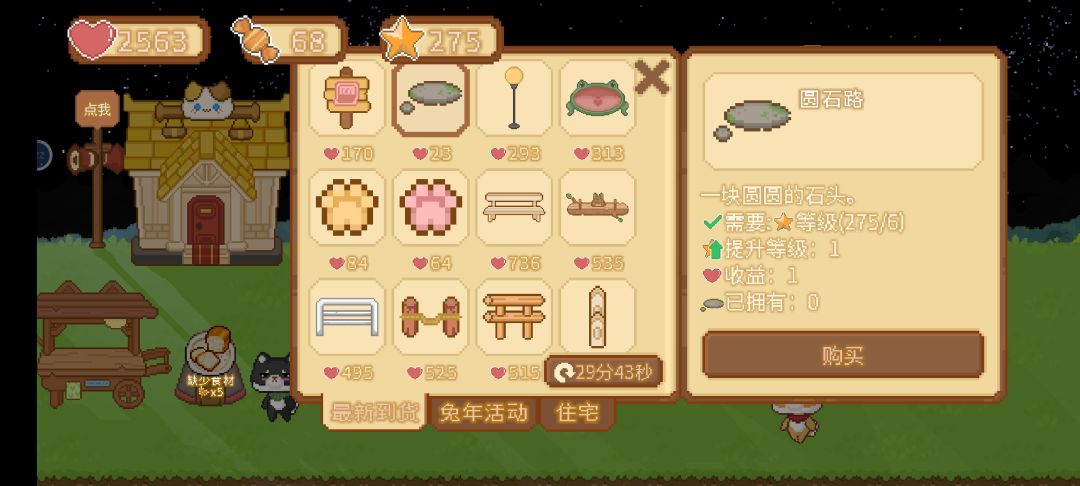 解锁阿浣家具店后,刷新家具找圆石路,批量购买提升等级