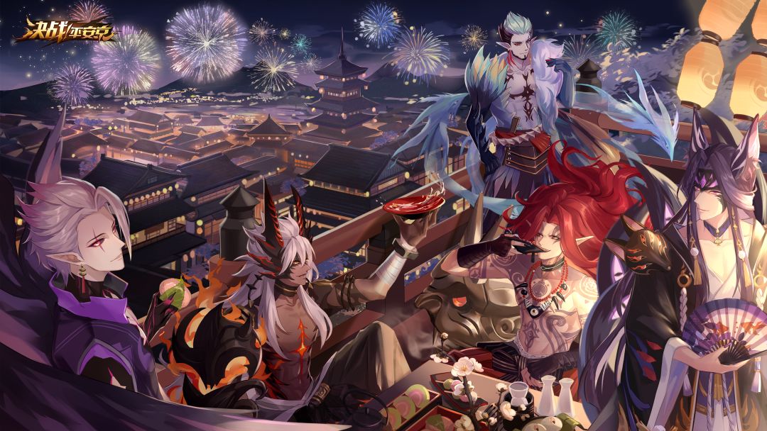 花火盛会上,前前子、吞吞子等大妖们正享受夏夜的晚风,欣赏庆典的花火~