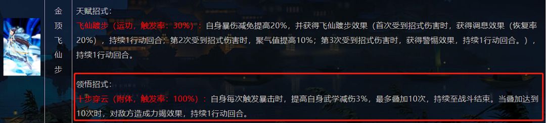 2、20%武学增伤效果只对连击的第二击起作用。因为连击的判定是在第一击释放后进行的,判定成功,武学增伤才施加,此时第一击已完成伤害,因此实际增伤只有10%。