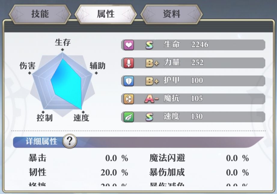 在五菱形属性盘中他的力量评级仅达到B级,但是,做力量加持对于墨斯菲忒也尤为重要。
