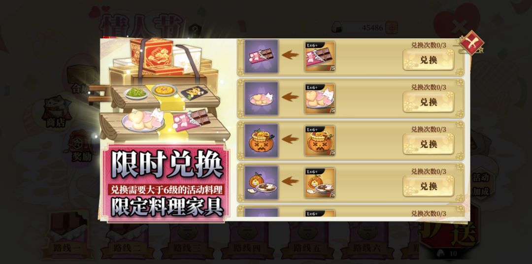 活动期间内,使用六级及以上的活动料理可以兑换料理限定家具!