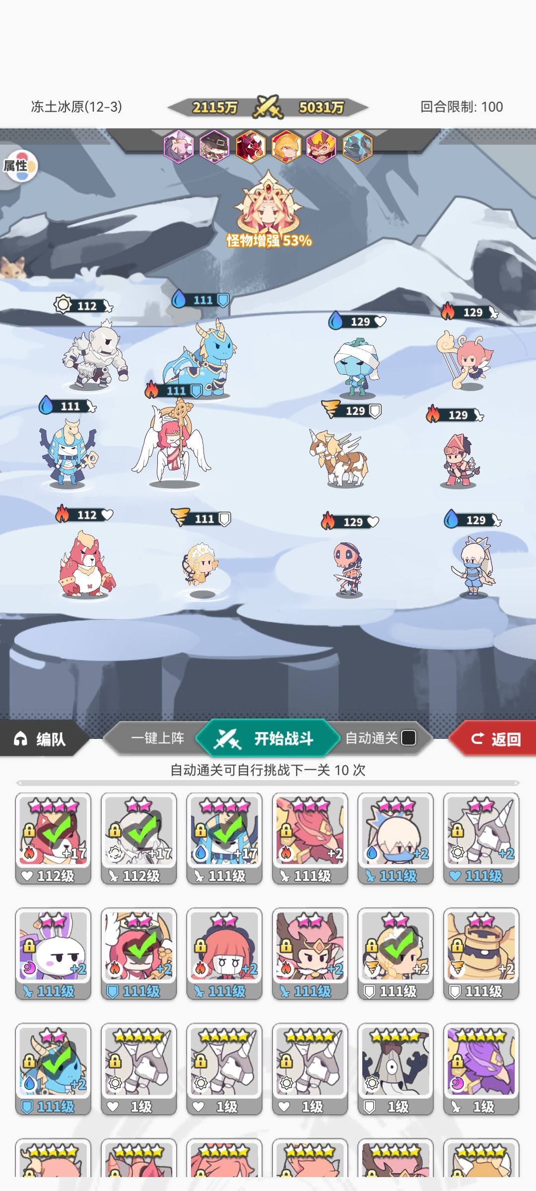 尝试过多种阵容,最后还是觉得这套推图和PVP效果都不错。当然还是得承认,换成兔子队推图会更好。这阵容是自动,但是越战高的三关卡图需要手动,保证最后一关光巨人能先手大招,水龙能第一回合控制。