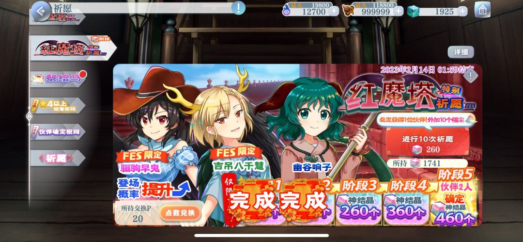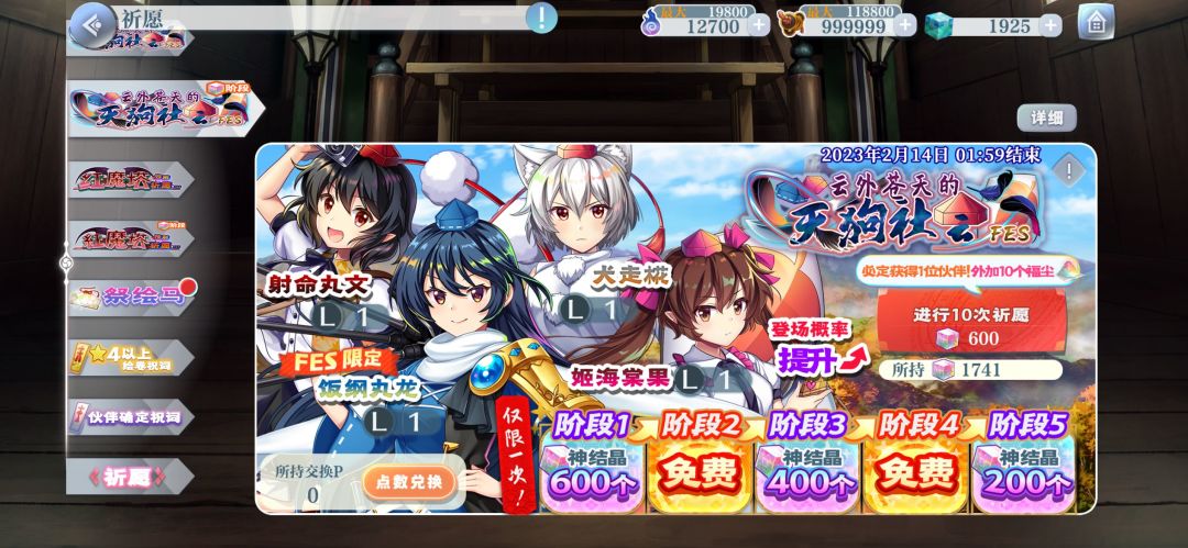 a限的阶段祈愿推荐攒1200神结晶把5阶段抽完,不然亏;