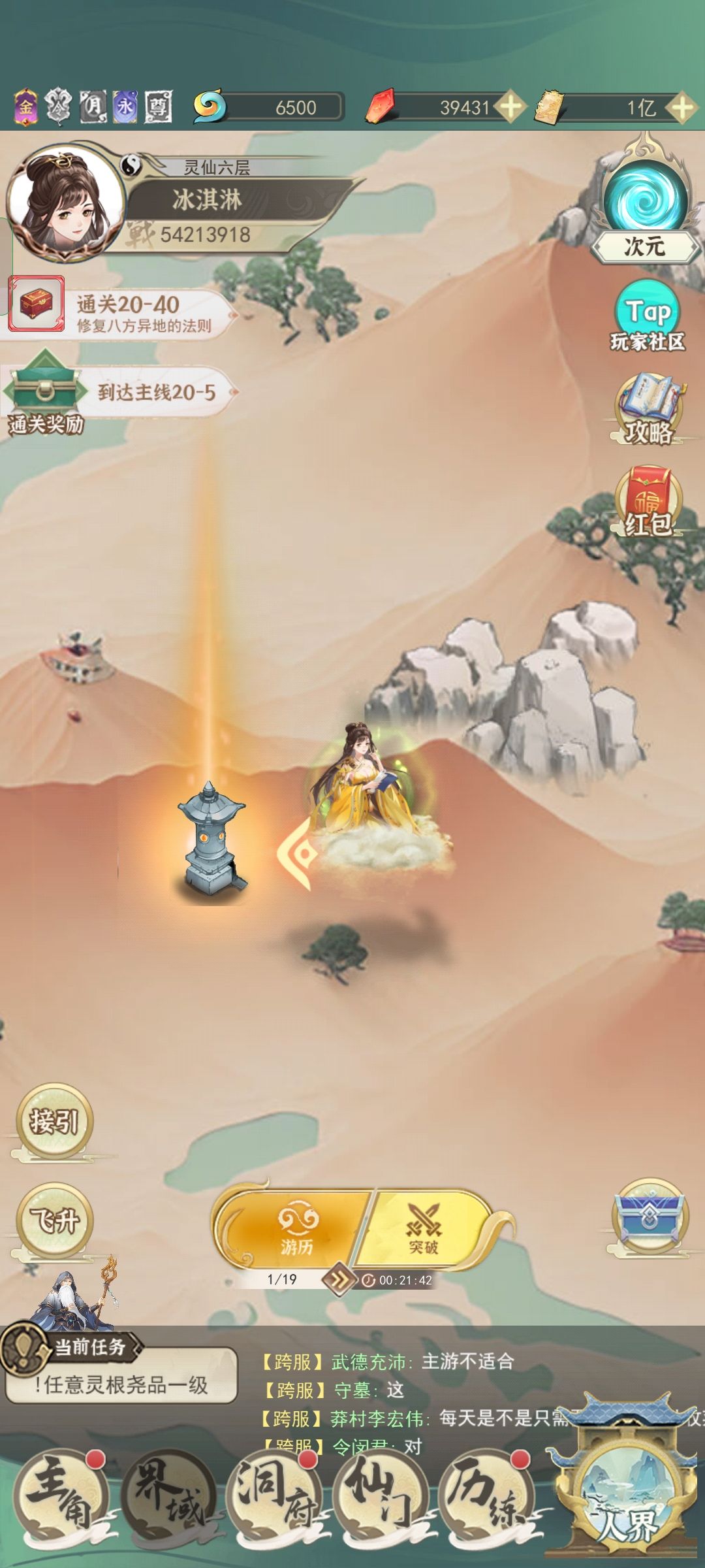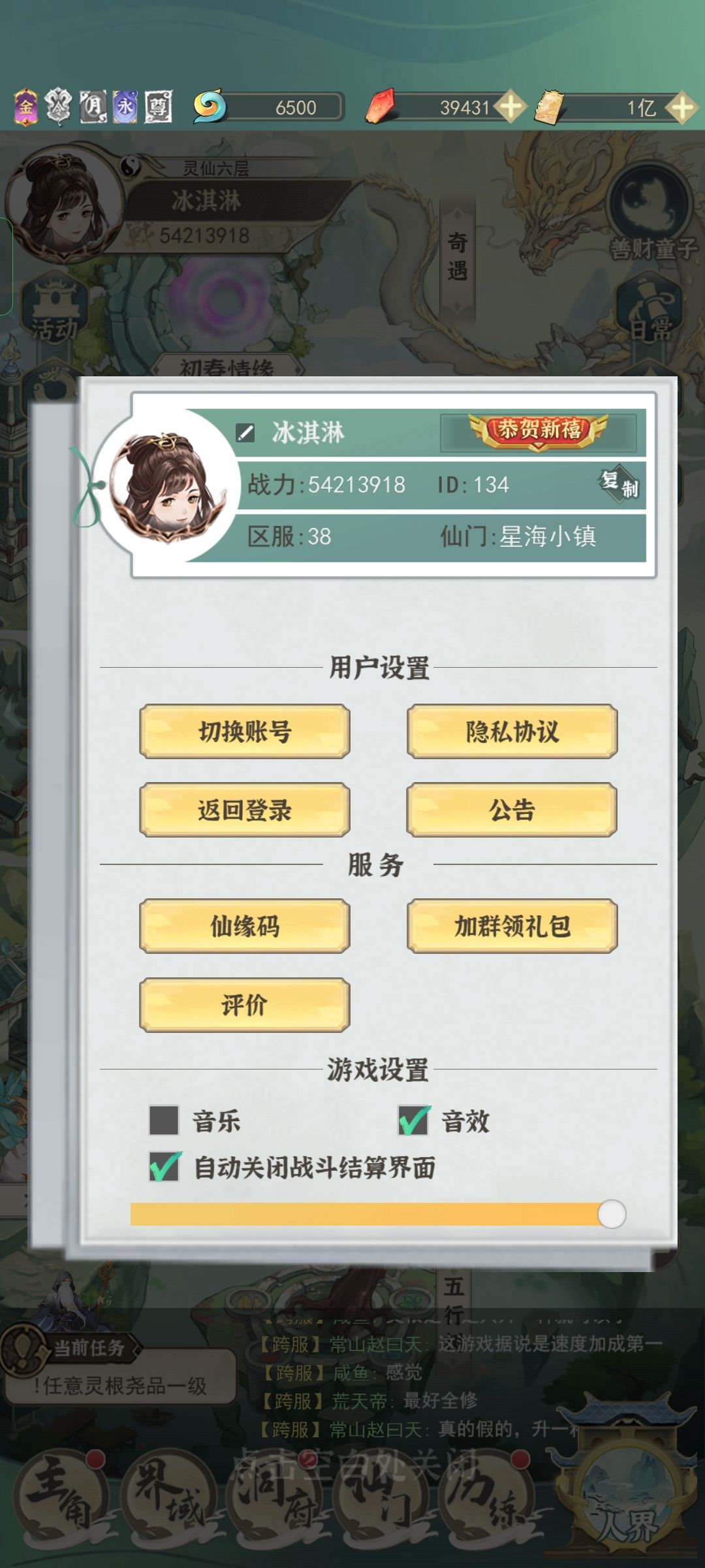 进游戏后跟着主线一直做到打镇妖塔的时候,点击头像进群,领一堆的礼包和仙玉。