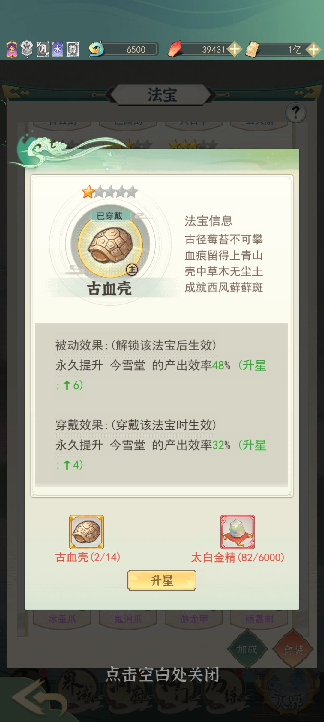 要是有了可以换盏,就是推荐的那个加果实属性的。紫色的法宝换瓶,就是推荐那个增加果实上线得。