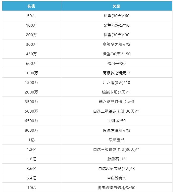 伤害达到10亿时可以获得50个御宝琉璃自选礼包哦~