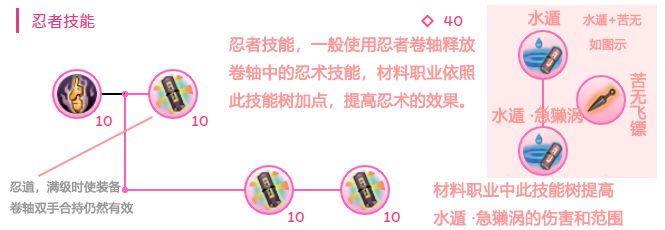 水遁的机制大致是:使用卷轴道具中的水遁忍术,学习忍者技能树是强化水遁效果。此处仅粗略提到,后面打法和配置方面会详细讲解。