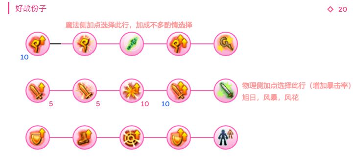 ☆如图所示,好战分子部分,第一行增加微量魔攻,第二行增加一点的暴击伤害和暴击率。
