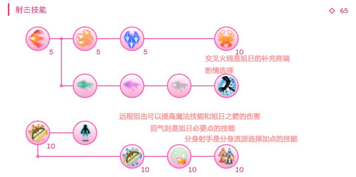 这些加点基本涵盖了魔法侧的所有主要技能,请注意图中文字,旭日的加点的也是需要冲击波的,但不会再次发图,最后别忘了射击技能的远程狙击。