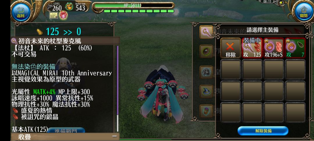 魔抗:30初音武器+13盾牌+25衣服+20帽子+10盾牌被动+5泽雷+50料理+25银杏+50属抗+15黄紫球=243