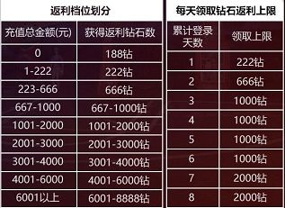 答:历史充值是指截止街篮2正式上线前,在街篮内的充值。返利活动根据你在街篮历史充值总额,生成对应的返利档位,具体如下,最高可获得8888钻。