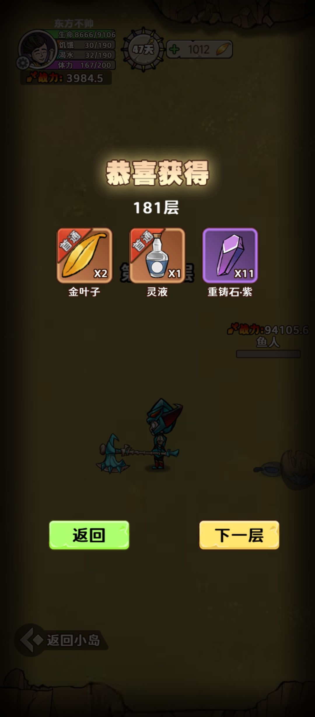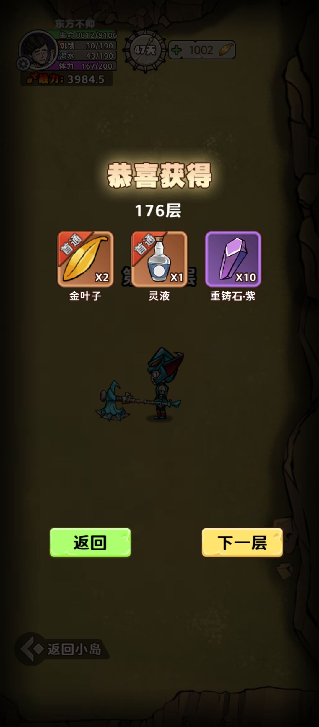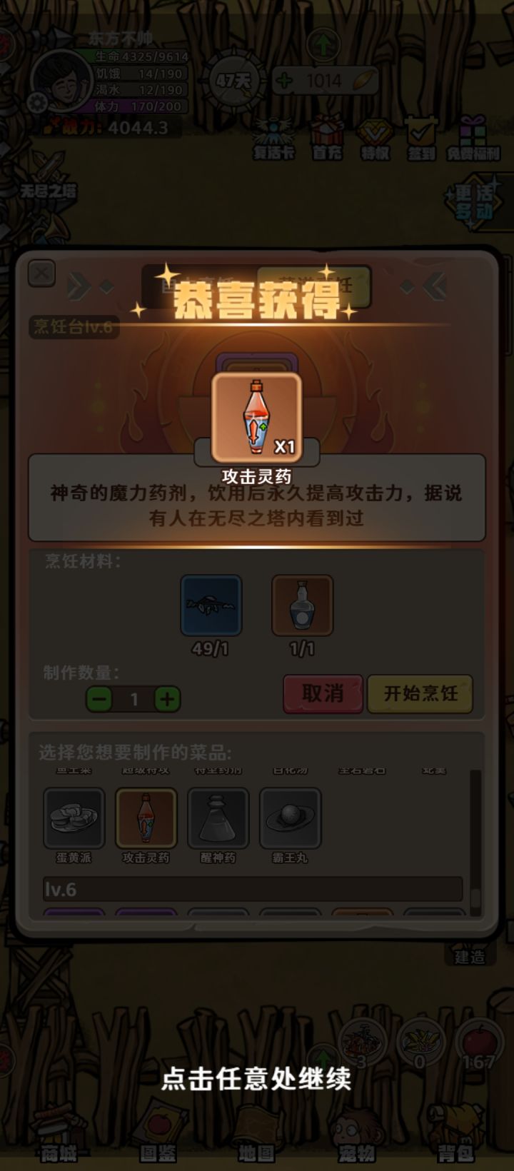 首先42层是个门槛,过了42后大概到70多层最右都是容易暴毙的阶段,大概80到160左右都可以随便打,过程中奖励给会攻击防御攻速暴击药水,当然还会给灵液,当然还会给龙鱼和金姑等做料理的材料。
