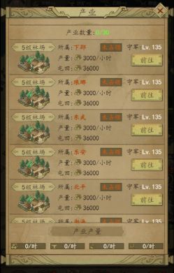 产业加速界面取消武将信息,增加显示令牌生产的收益,方便快速了解生产收益。