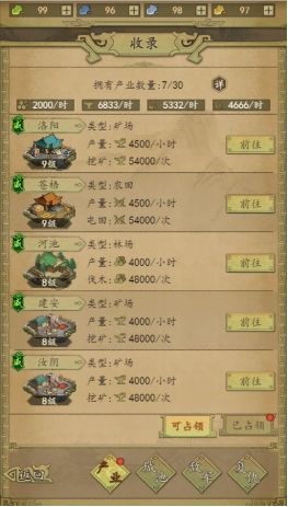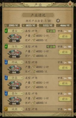 可点击“详”按钮,可以快速查看已拥有的各种产业数量等详情。