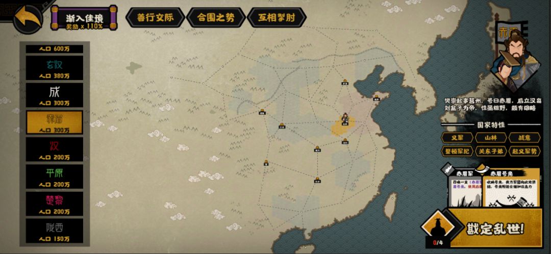 【合围之势】:任意势力进攻时,若进攻方有盟友国与进攻目标接壤,战斗力+20%