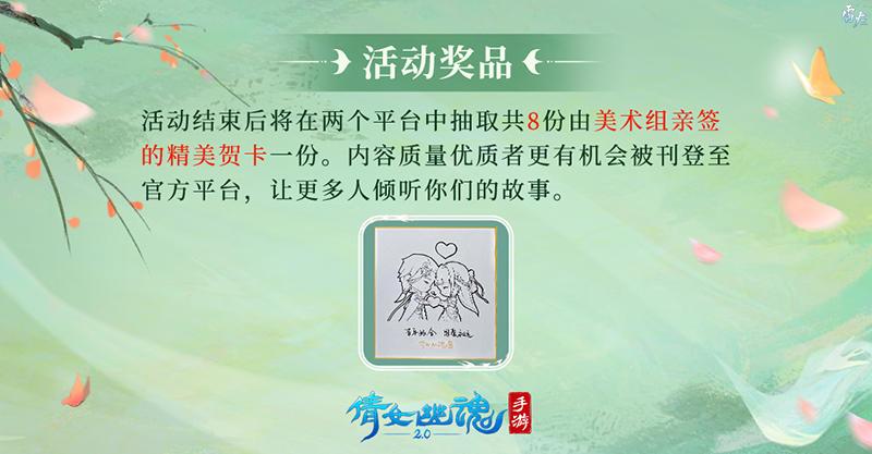 玩家参与【呼唤你的名字】活动分享昵称故事后,倩女手游将在两个平台中抽取共8份由开发组亲笔签绘的精美贺卡,并根据你与你cp的职业独家定制!这份专属礼物不仅仪式感满满,同时也承载着倩女手游美术组对玩家们真挚感情的美好祝愿!你与TA独一无二的经历还有几率被刊登至官方平台,让三界更多人倾听到你们的故事!