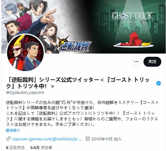 随后,《逆转裁判》官方推特宣布将化身为《幽灵诡计》X《逆转裁判》双官推。刚好两款游戏的编剧均为巧舟。
