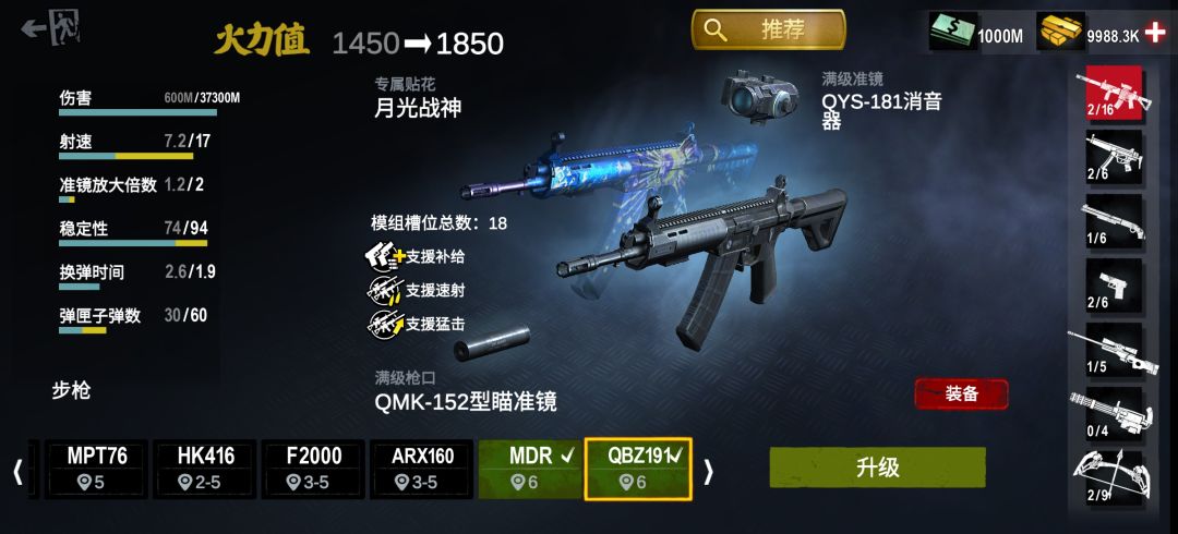 全新辅助型武器,18槽位,三技能均可给主副武器加成。专属配件文字错位,正式版本会调整。