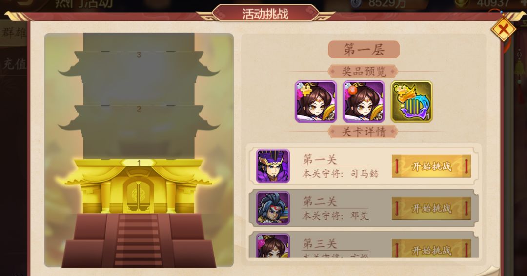 活动内容:活动期间开启限时副本挑战,活动副本共有7层,每层4关,每次过关可获得奖励。每日解锁一层可进行挑战。