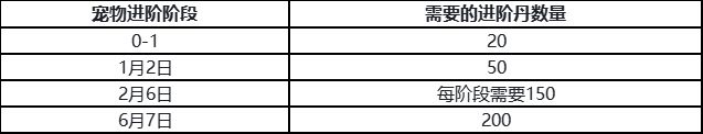 宠物进阶阶段需要的进阶丹数量