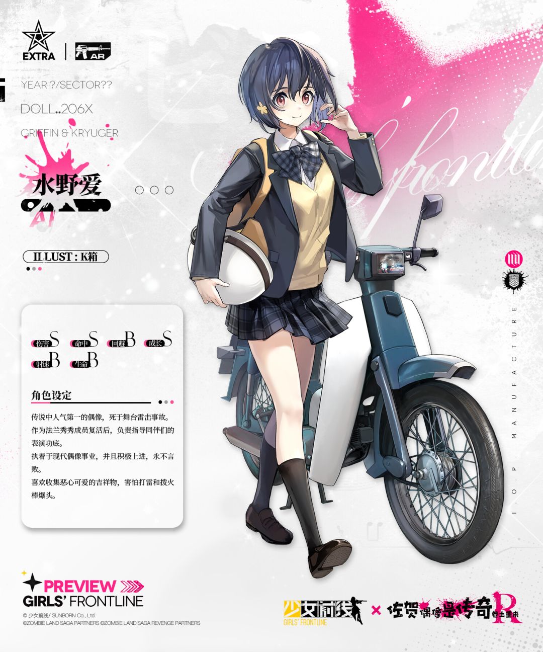 亲爱的指挥官们,本次联动“雪浪映花颜”将在2月17日维护后正式上线!现在为您带来将在本次联动中登场的特典突击步枪人形“水野爱”、特典突击步枪人形“绀野纯子”的介绍!不同时代偶像的碰撞与融合一定十分精彩哦~
