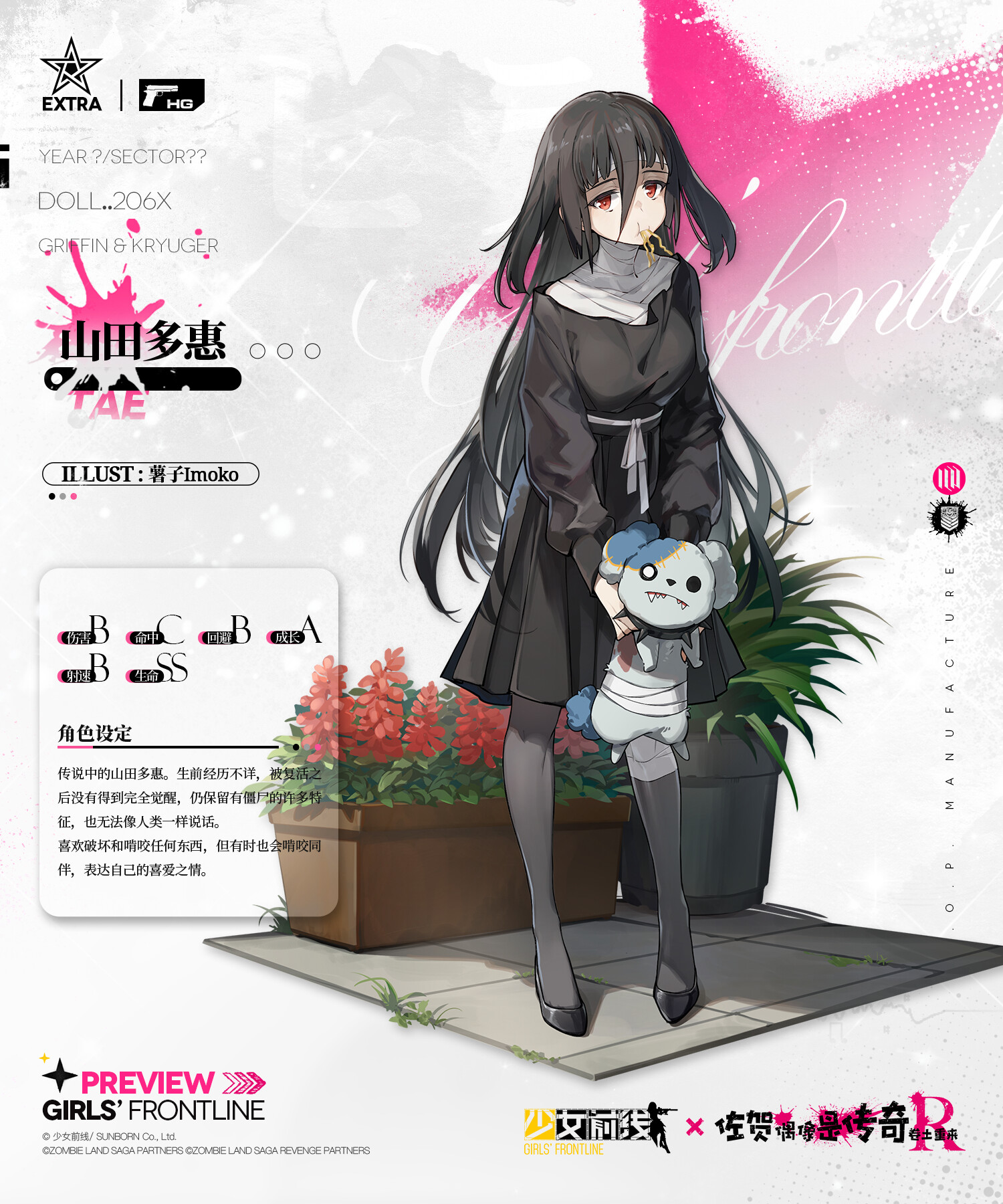 为您带来将在本次联动中登场的特典手枪人形“山田多惠”介绍!最后出场的是传说中的山田多惠!嘎呜嘎呜。嘎~呜~