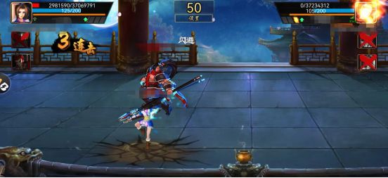 开局后利用孙尚香的移速优势走位,可以试探性一技能直线沿途吸附风球先手,如果发现右上角对手有掉血状态,这时移速和三技能错位的优势将被无限放大,快步近身后衔接三技能追踪连招,然后接变招普攻+2技能+变招普攻持续输出,期间一定要紧盯对手血量,一旦发现有掉招,果断撤招争取化险为夷。继续通过走位观察对手位置,寻找机会以三技能Y轴错位起手,命中对手后接一定的连招便可稳妥切出刘备,1123的连招顺利将对手拿下。