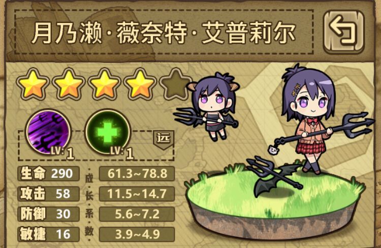 珈百璃对于新萌来说cd略长,输出过于分散,遇到回血光环地图会很拉跨,而且地图出怪是一波一波的,没成型输出不太足,也没有足够坦度,不过5秒的混乱和清除召唤,可以暂时当小辅助使用。到了后期让珈百璃质变的是圣天使或小光,三破圣天使可以加1.7倍攻击力,可以打出7.5*1.7=12.75倍全体伤害,双天使都可以控制对面魔物,加上cd短,使用起来可以循环控制敌方魔物。