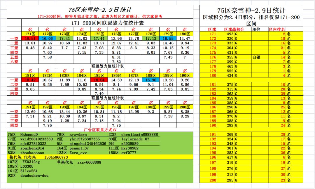 171-200区间,转区前战力统计表