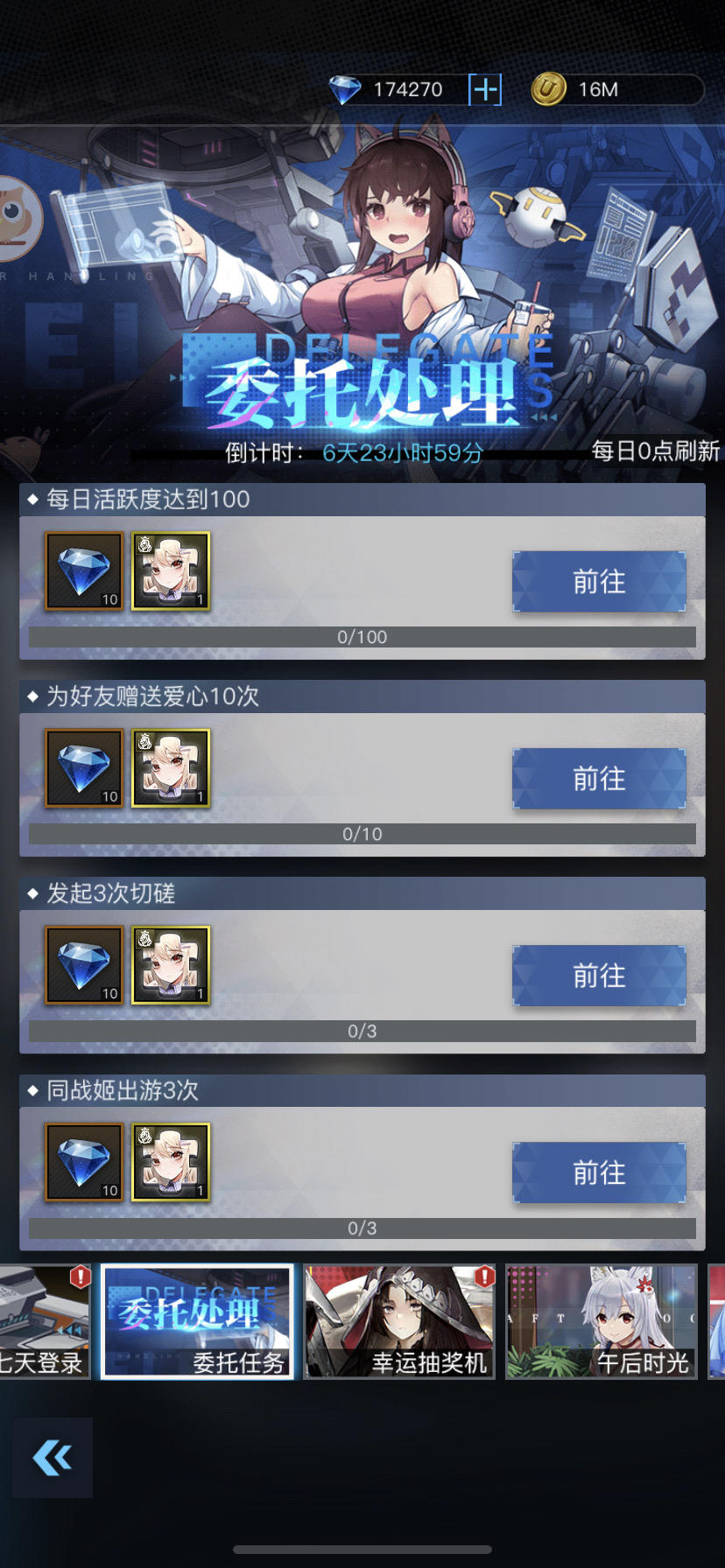 七天共可以获得:500k联盟币、300重铸碎片、3张定向招募卡、500晶钻、300能量栉、50个ssr碎片、3个高级扭蛋币、7张幸运抽奖券