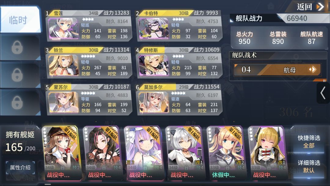 此阵容遇到驱逐队或者航母队可能拉闸,但炮队遇到了就很难受,所以开头就说了对炮队充满深深恶意!