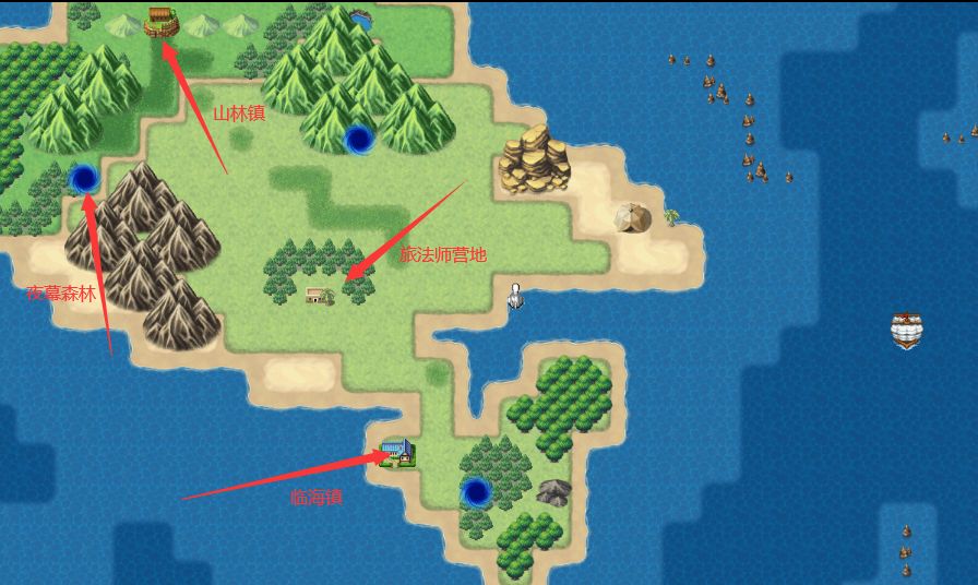 ⑥.去临海镇的镇长家,买两个水弹术(找图中NPC买)。