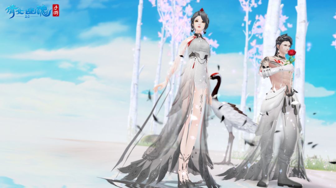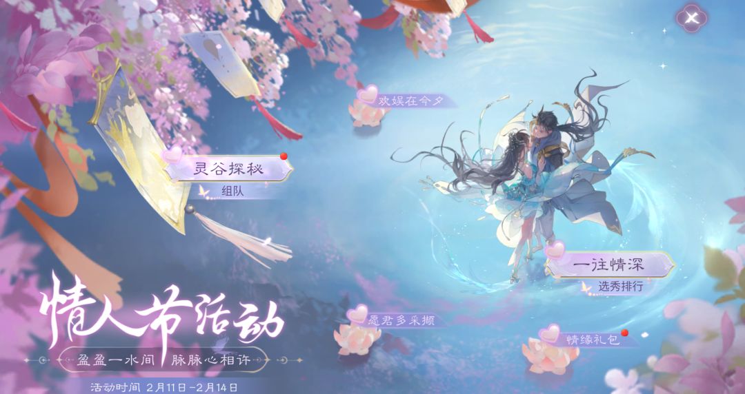除了脑力大开探秘结局,也可和异性好友组队参与一往情深活动,通过鲜花互赠、每日约会、表情互动等日常任务增加恩爱值,每日22点结算的恩爱值第一名玩家可获得云鹤吟时装(1天)奖励!同时在2月14日23点50分将产生最终排行榜,排名前50的小伙伴也可获得云鹤吟时装。