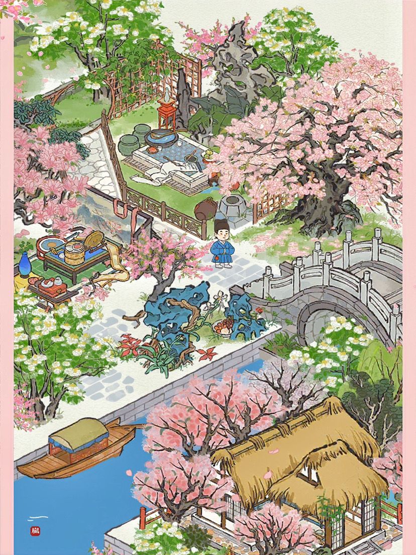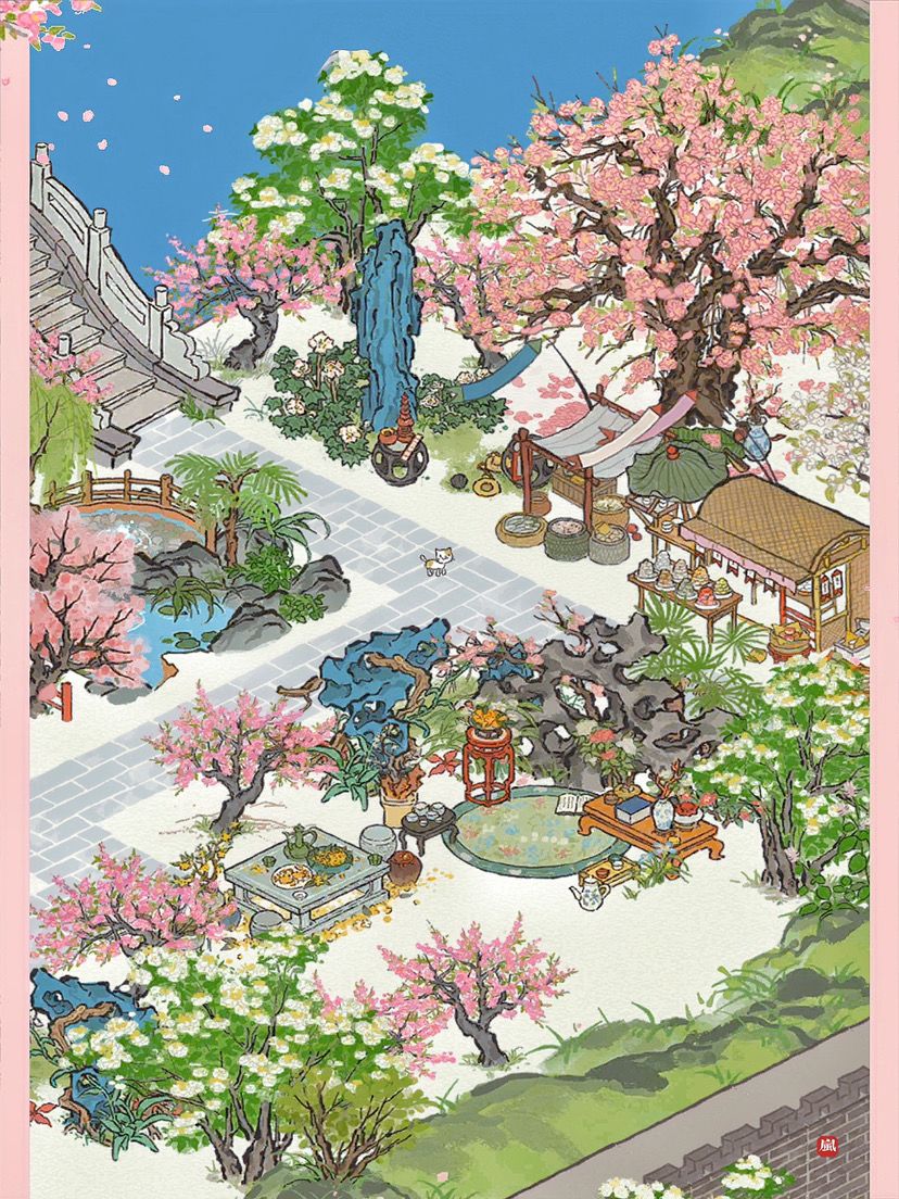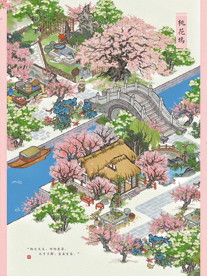 🥀情人节快到啦~🌸愿每个人都能找到属于自己的小桃花。🌸主要建筑:桃花坞|颜如玉|烂漫繁樱|芭蕉庭院|绿园奇石