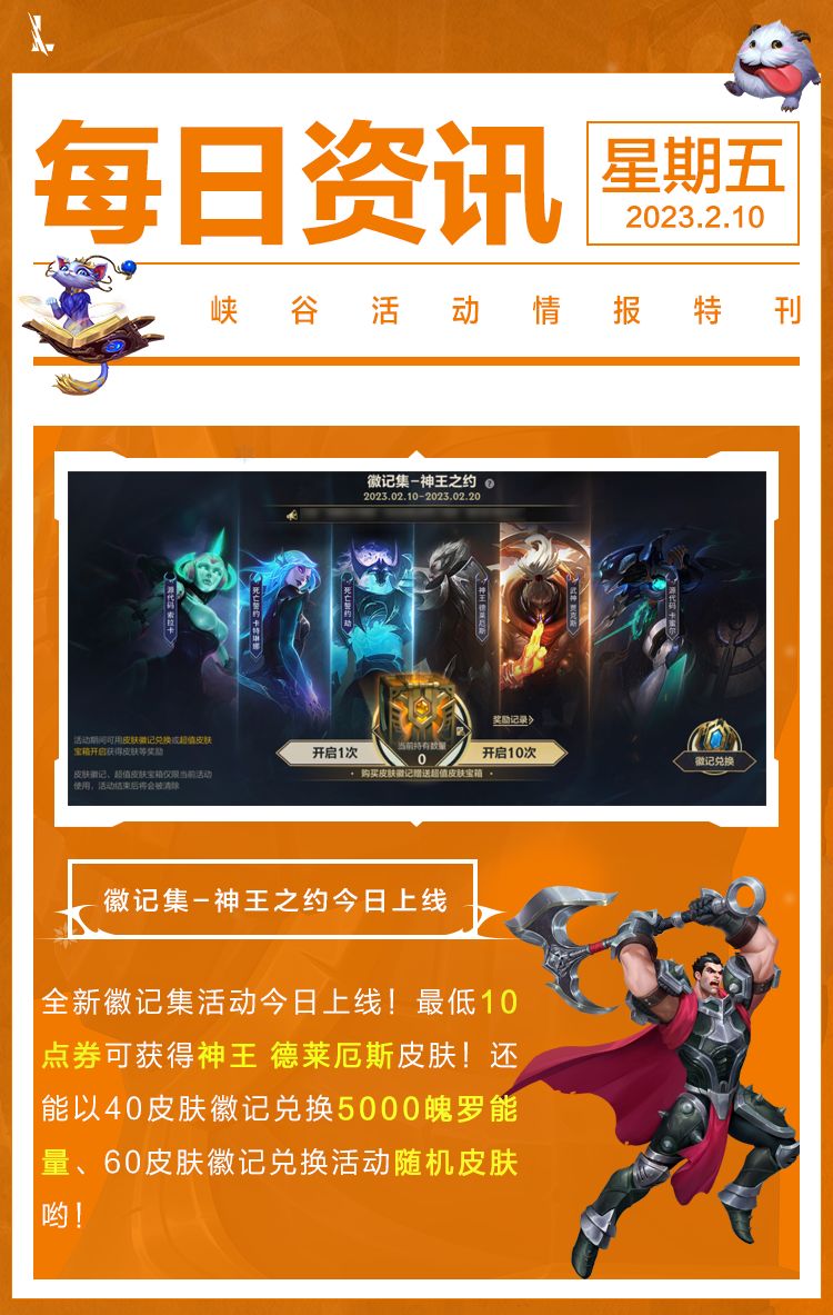 不知不觉又到周四,今天隆哥照常在峡谷里四处收集情报,果然有新发现:徽记集-神王之约活动将在明日上线,...