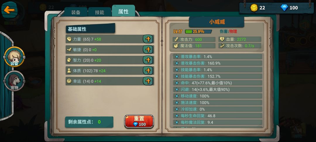 看属性面板,17级,600攻,2000血,46每秒回血。这很关键。