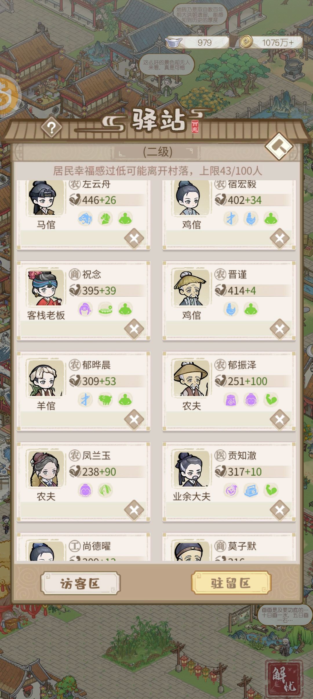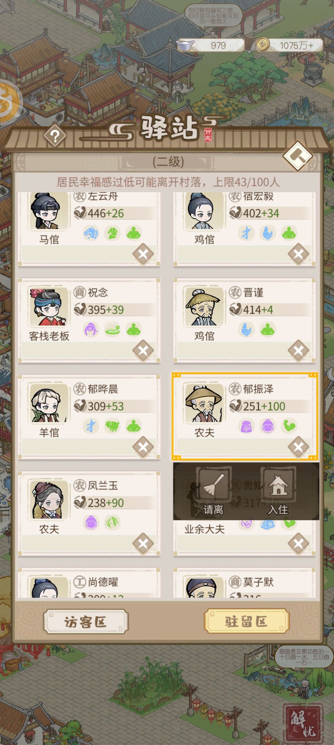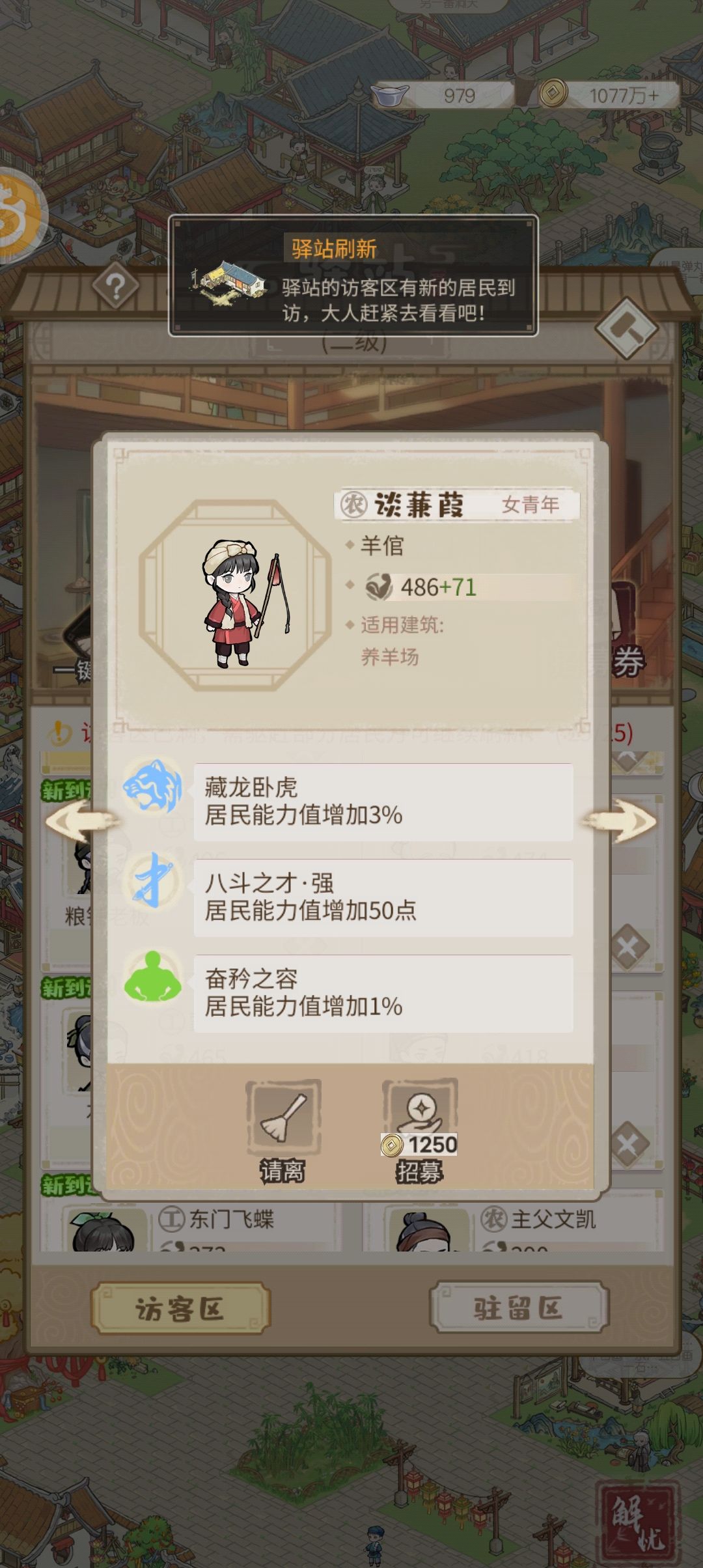 每次进驻留区都想点开村民的详细页面看天赋,但每次点进去只有入住和请离,建议跟访客ui一样直接可以点开详细页面!
