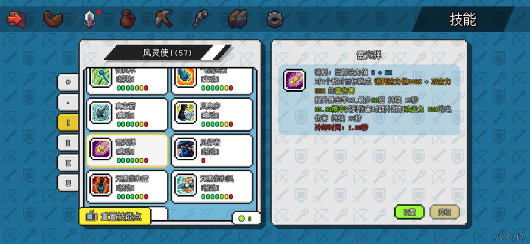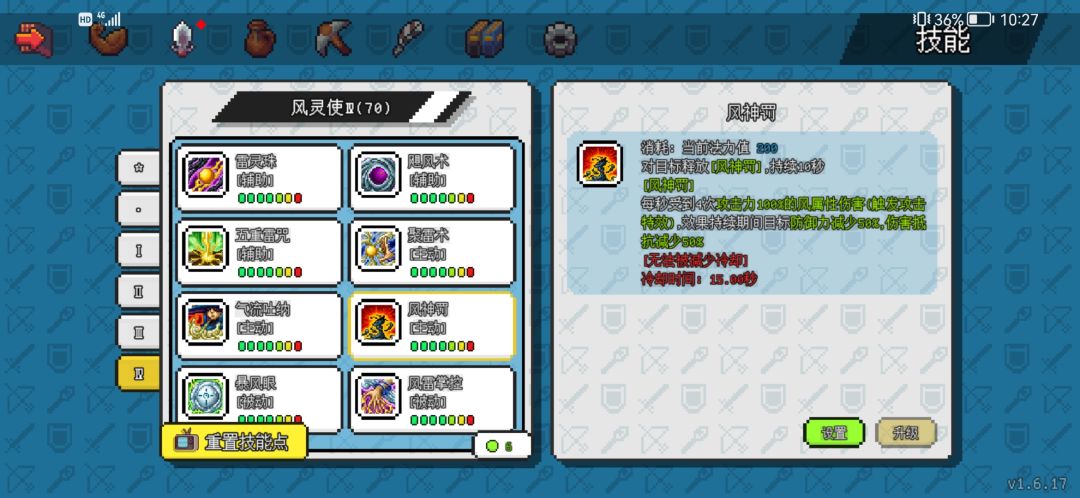 这才是风灵最有灵魂的技能。40级解锁。大范围聚怪。只有这个技能,才能体现出风灵强大的控场能力。风铃最为本质的意义。搭配上五转作者披风。基本上一杀一大片。这是风铃最强的技能。不过只是强在范围聚怪。但这才是风铃最本质的意义,超大的范围。(加上作者披风)一扫一大片。操纵得当能在40分钟以前,100级。加上纯敏的高暴击不管是70级的升级,还是70级前的过渡都是手到擒来,可以说是目前升级最快的了。没有更快的。但是这个技能只能打小怪。主要发挥场地还是在沙漠营地的过渡也只有那里成片的小怪,能让他有所发挥。千万别小看这个技能。这是风铃1到100级,能在40分钟以前的核心。没这个计能我也不敢这么肯定。这也是我为什么说这是正常40到70的坐牢期,因为正常人基本上不会在40级用这些技能。就算用了也不怎么重视。可实际上,只要给这个技能加个作者披风,他的发挥将会是非常的恐怖。让你轻松过渡别人的坐牢期。