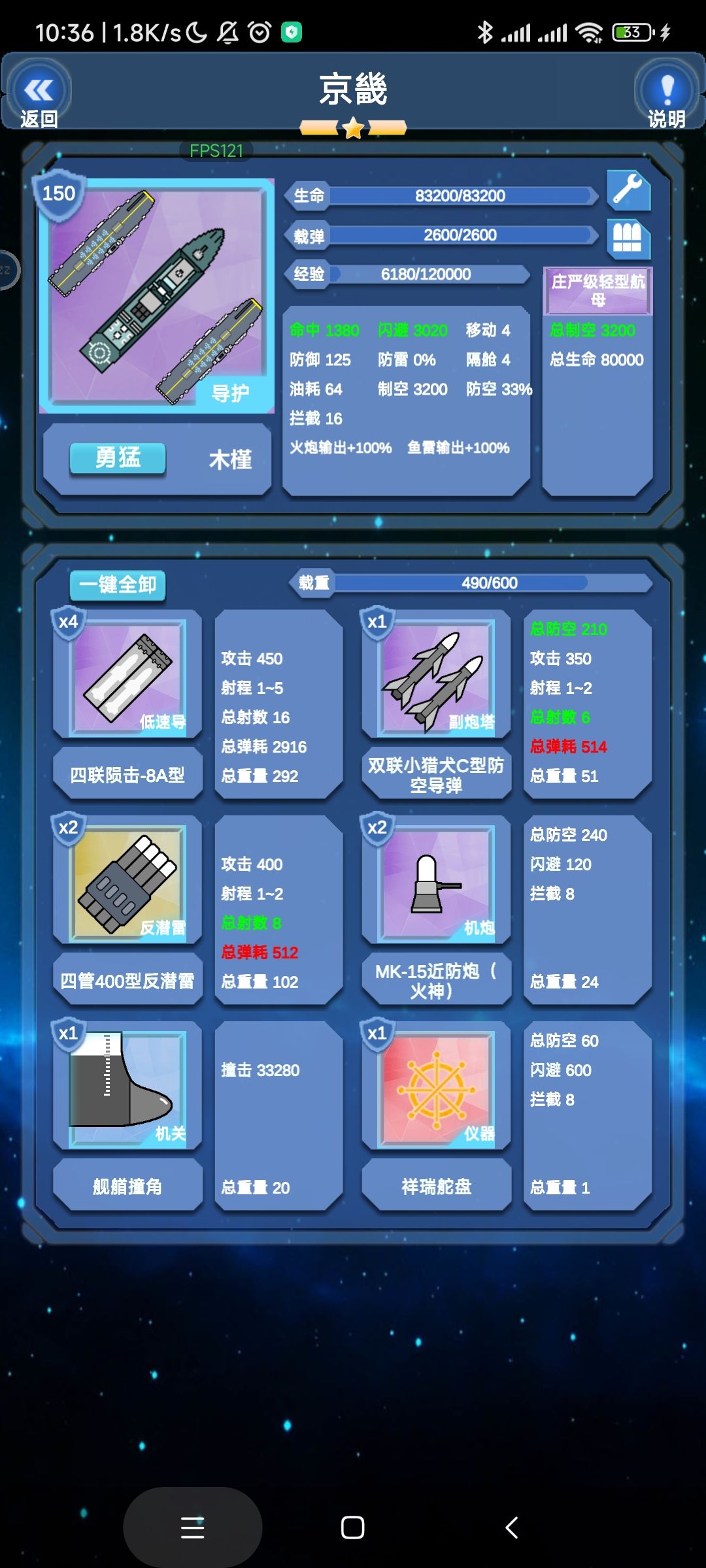撞角的威力应该是和血量成正比的,所以4个庄严级航母是关键,血量上8万后,单个撞角伤害至少3w以上。搭载到闪避最高的护卫舰上。装备优选选择高拦截,高闪避,高防空的,主武器无所谓,反正弹药支撑不到第二发。