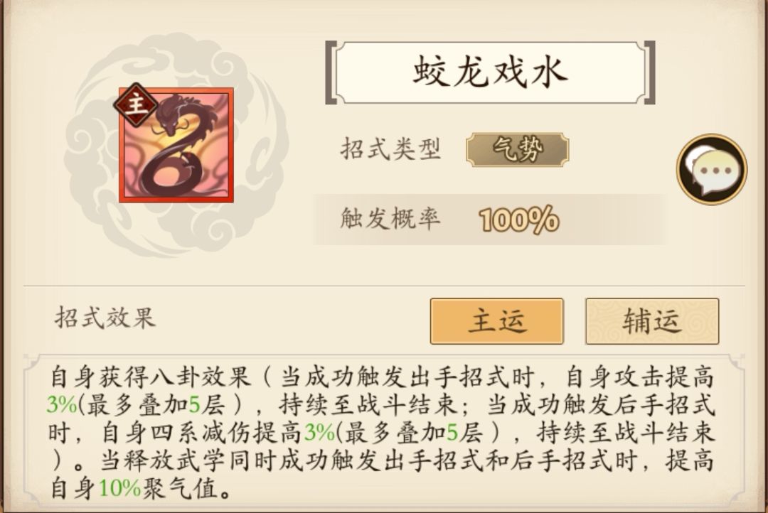 4.如果他什么加聚气的招式都没带,只是运气好,触发了内功和轻功的相应招式,三步招风和无影无形,那就是35%的聚气。